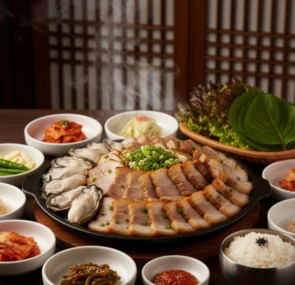 In the pantheon of Korean gastronomy, few dishes capture the spirit of seasonal transition as eloquently as Gulbossam. Historically, this dish finds its soul in the ritual of Gimjang—the communal preparation of winter kimchi. As families labored over mountains of salted cabbage, the tradition emerged to reward the collective effort with Suyuk (tender boiled pork). However, the addition of Gul (raw oysters) elevates this humble reward into a high-end epicurean event. It represents a poetic convergence: the richness of the earth meeting the briny vitality of the cold winter sea. To eat Gulbossam is to participate in a centuries-old dialogue between the Korean coastline and the inland harvest, a celebration of time, labor, and the fleeting peak of the oyster season.
