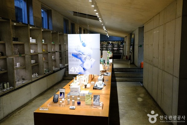 Amore Seongsu is an experiential store presented by the cosmetics brand Amorepacific Corporation. The building was renovated from an old car repair shop and presents a unique vibe. Visitors can test products on their skin and purchase products from over 30 brands released by Amorepacific Corporation. Recommended items include the Puzzlewood Hand Cream and Vegan Brush, made using a vegan recipe and a certified-vegan. A pop-up store is operated every month in collaboration with brands from various fields worldwide, providing trendy and extraordinary experiences such as exhibitions and product testing.