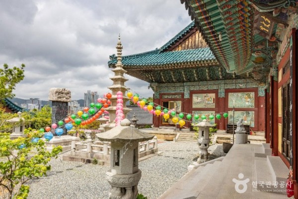 The "jeongsa" of Hyewonjeongsa Temple refers to a temple, meaning a place where practitioners dwell and dedicate themselves to spiritual cultivation. It houses various halls such as Daeungbojeon, Manbuljeon, Samseonggak, Bell Pavilion, Yosachae, and Statue of Avalokitesvara Bodhisattva. There is a hiking trail leading to the summit of Myobongsan Mountain, from where one can enjoy a panoramic view of Busan city.