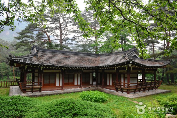 Jangsudae Pavilion was completed on October 1, 1959 to commemorate the great victory of the battle held at Seoraksan Mountain during the Korean War. It serves as a resting spot for visitors who hike up the park to visit attractions nearby such as the Daeseung Falls, Oknyeotang Spring, Gamatang Spring, Hangyesanseong Fortress, and Haneulbyeok Wall. The pavilion is built in a traditional Korean style and considered as an excellent hermitage in terms of both structure and size. The surrounding nature consisting of mountain cliffs and pine forest makes the building stand out even more.