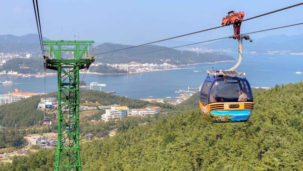 Tongyeong Cable Car installed on Mireuksan Mountain in Tongyeong is 1,975 meters long, and a bi-cable automatic circulation gondola system was installed using the latest Swiss technology. At an average speed of 4 meters per second, it takes about 9 minutes to reach the upper station, circulating a total of 48 gondolas that consist of 47 passenger gondolas and 1 cargo gondola. The cable car implemented an eco-friendly design and has only one intermediate support with the aim of protecting the environment while providing a comfortable ride for passengers. In addition, the 8-person gondolas operate non-stop, allowing passengers to board without delay and enjoy the beautiful scenery of Korea’s beautiful ocean in privacy with their loved ones. They also have a pet-friendly cable car, allowing visitors to ride with their pet.