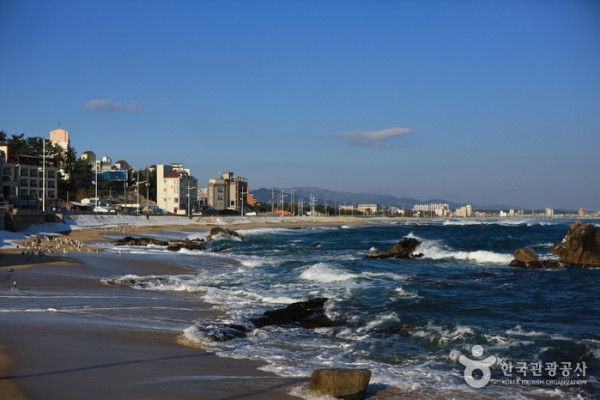 Yeongjinhaebyeon Beach is a quiet and clean beach filled with the blue hue of the sea, making it a popular attraction among the locals. Compared to other East Sea beaches in Gangwon-do, the waves are not as rough and there are many rocks around the beach so children can have fun playing in the water. The beach is a popular vacation spot among people who are seeking to relax in peace.