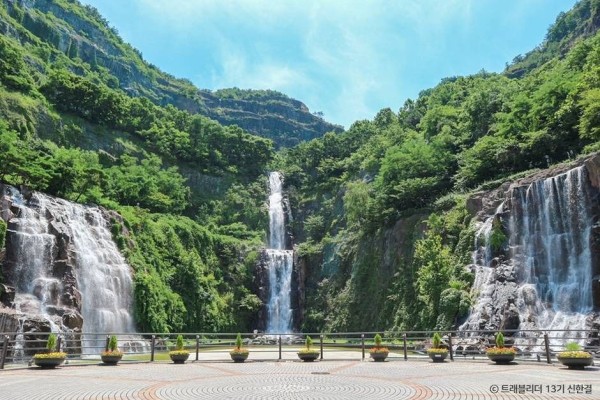Yongma Falls Park is situated on the mid-slope of Yongmasan Mountain, established following the closure of an aggregate collection plant. The park showcases three artificial waterfalls: Cheongnyongpokpo Falls, Baengmapokpo Falls, and Yongmapokpo Falls. Each waterfall comprises two tiers, with x_heights ranging from 21m to 51.4m. The park is equipped with various amenities, including ponds, tennis courts, soccer fields, a wildflower garden, walking trails, and a barefoot walking trail.