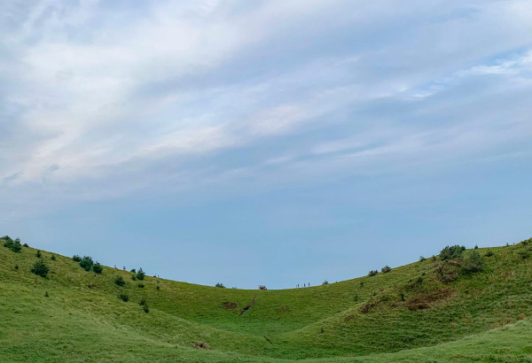 Yongnunioreum Volcanic Cone is located in the eastern part of Jeju. It connects three craters and creates beautiful ridges. Its relatively low x_height makes reaching its summit easy. The top offers panoramic views of Seongsan Ilchulbong Tuff Cone and Udo Island in the distance. In spring and summer, the area is covered with green grass, while silver grass takes over in fall and winter.