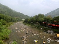 Gyeonggido Jeongmok-ri, Gapyeong-gun, Gyeonggi-do Myeongjigyegok Valley stretches eastward from the summit of Myeongjisan Mountain (alt. 1,267 m), the second highest mountain in Gyeonggi-do. The entrance to the valley offers several convenient amenities, including restaurants, public restrooms, and accommodations. In the valley itself, clean water powerfully cascades over rocks. Forests line both sides of the valley entrance, and a trail leads to Seungcheonsa Temple. Myeongjipokpo Falls, nearly an hour's walk from the valley entrance, is just 7~8 meters high, but is extremely beautiful in fall.