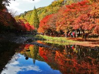 Jeollabukdo 97, Gangcheonsan-gil, Sunchang-gun, Jeonbuk-do Gangcheonsan Mountain is surrounded by Gwangcheonsan Gwangjubong Peak (583.7 meters above sea level), Gwangdeoksan Seonnyeobong Peak (578 meters), and Sanseongsan Yeondaebong Peak (603 meters above sea level) in the area of 996beonji, Cheonggye-ri, Sunchang-gun, Jeollabuk-do. It is divided into small canyons and has an outstanding view with rocky mountains on all sides. The valley was called Gangcheon Valley because clean and clear water flows like a spring on the hard rocks, and all the mountains around it were called Gangcheonsan Mountain. It is said that in the past it was called Yongcheonsan Mountain, named after the shape of two dragons waving their tails toward the sky and ascending to heaven. Following the Noryeong Mountain Range to Chuwolsan Mountain, it forms Gwangdeoksan Mountain and Yongcheonsan Mountain. On Sanseongsan Mountain (two dragons from the eastern sky to the western sky) that towers high in the sky, two dragons run east side by side. There are numerous peaks, some famous ones are, Yeondaebong, Undaebong, Suyeongbong, Cheonjabong, Gitdaebong, Gwangjubong, Gyeonjebong, and Songrakbong peaks. Between these two mountains is a very deep valley. Some of the famous valleys are, Yeondaegyegok Valley, Seonnyeogyegok Valley (Jeobujegol), Wondeunggyegok Valley (Yongdaeamgol), Buntonggol Pass, Jijigol Valley, Somokgol Valley, Samindaegyegok Valley (Hwangwoojegol), Giwoojegol Valley, Senyanggol Valley, Multonggol Valley, Chodanggol Valley, Ujakgol Valley, Dongmakgol Valley, Geumganggyegok Valley (Tapsanggol), Seungbanggol Valley, Byeondugol Valley, etc. The clear water flowing from every valley joins into one and the sound of the water crashing against the rocks and stones echoes throughout the valley and enters Gangcheonho Lake. When spring comes, willows bloom, and when the forsythia and azaleas are in full bloom, wild cherry blossoms reach full bloom on every mountain peak. The clear and clean water flows continuously between the gravel along the valley. Visitors can cool off the heat in this river that does not collect moss either because it is too cold or clean. On Gangcheonsan Mountain, there are beautiful shrubs and maple trees, and the baby maples and baby squirrels announce the arrival of autumn among the seven different types of maple trees. The multiple trails on the mountain are not steep or too dangerous, making it popular regardless of age. It is also ideal for mountaineering and mountain-loving hikers. The scenery of the river with white snow and icicles attracts painters who want to capture the moment on a canvas. Gangcheonsan Mountain has four distinct seasons making it a popular destination all year round.
