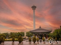 Busan 37-30 Yongdusan-gil, Jung-gu, Busan Busan Tower, standing at 120 meters tall, is an iconic observation tower situated in Busan's Yongdusan Park. This tower offers visitors panoramic views of Busan Port and Yeongdo Island. A highlight is the nightly fireworks mapping show, where graphical displays are projected onto the windows, creating a mesmerizing backdrop against the colorful night view of Busan Port Bridge. The lower floor of the tower is a haven of amusement, themed around a flying submarine. On the second floor, visitors will find a photo zone and rooms decorated with themes representing famous travel destinations in Busan.