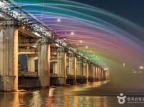 Seoul 647 Banpo-dong, Seocho-gu, Seoul The Rainbow Fountain plunges 20 meters into the water on both side of Banpo Bridge over the Hangang River. When the sun goes down, 200 lights illuminate the fountain as it sends out dancing, rainbow-colored jets of water in the air in synchronization with music. The fountain boasts spectacular views from the hills, the Hangang River observation deck, and the moon-shaped Moonlight Square. Banpo Bridge Rainbow Fountain operates every day from April to October, four to six times a day for 20 minutes.