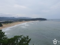 Gangwondo Opened in 1973, Hwajinpo Beach is a stretch of white sand made of monazite, a fine sand made of crushed shells and rocks over tens of thousands of years. Monazite sand makes a distinct sound when stepped on and repels ants. The beach is 1.7 kilometer long, about 70 meters wide, and 1.5 meters in average depth. The beach attracts many tourists with its fine white sand, clear waters, and shallow depths. Its view is characterized by scenic landscape of handsome rock formations and lush pine forests surrounding the massive Hwajinpo Lake. The area is home to the Villa of Kim Il-sung, the Villa of Syngman Rhee, the Villa of Lee Ki-poong, and Hwajinpo Maritime Museum. The scenic view of the bamboo forest on Geumgudo Island and the seagulls flying over the water will leave visitors in awe.