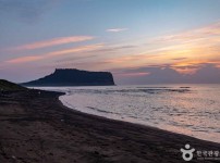 Jejudo Goseong-ri, Seongsan-eup, Seogwipo-si, Jeju-do Located on the way from Seongsan Ilchulbong Tuff Cone to Seopjikoji, Gwangchigi Beach marks the end point of Jeju Olle Trail Route 1 and the starting point of Route 2. It is known for its unique geological formation, where hot lava cools down immediately upon meeting the sea. During low tides, visitors can see hidden scenic spots. The frozen lava covered with green moss, creates a spectacular view. In particular, the stunning sunrise view with Seongsan Ilchulbong Tuff Cone in the backdrop attracts a lot of visitors. The beach is also known for its black sand. (Information courtesy: Visit Jeju)