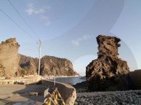 Gyeongsangbukdo Namseo-ri, Ulleung-gun, Gyeongsangbuk-do The western coast of Ulleungdo Island is perfect for taking in the sunset; Sajabawi Rock in Namyang-ri is easily one of the most accessible places, located right next to the coastal road. The scenery is complete with squid drying in the the last rays of the sun at the coastal village, and boats heading heading out to catch more squid when the sun finally sets.