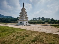 Jeollabukdo 362, Mireuksaji-ro, Iksan-si, Jeonbuk-do Mireuksa was the largest Buddhist temple of the ancient Baekje Kingdom (18 BC-AD 660). According to Samgukyusa (historical records published in 1281), King Mu (30th king of Baekje, in power AD 600-641) and his wife Queen Seonhwa were said to have seen a vision of Mireuksamjon (the three Sanskrit) emerging from a large pond. At the time of their revelation, the king and queen were on their way to visit a Buddhist monk in Sajasa Temple on Yonghwasan Mountain (now known as Mireuksan Mountain). In response to their vision, the king drained the nearby pond and established Mireuksa Temple. The temple is believed to have shown the most advanced architectural and cultural skills of Baekje, Silla, and Goguryeo (the three main kingdoms at that time). Records indicate that King Jinpyeong of Silla even sent his craftsmen over to assist with the temple construction. The two main features of the Mireuksa Temple Site are the stone pagoda (Mireuksaji Seoktap) and the flagpole supports (Mireuksaji Dangganjiju). The 14.24-meter-high west stone pagoda (National Treasure No. 11) is the oldest and largest Korean stone pagoda in existence. The west pagoda currently has only six tiers, but is estimated to originally have had nine. The nine-story east stone pagoda (27.67 meters in x_height) was restored to its original stature in 1993 based on historical records. Other surviving landmarks include the flagpole supports (Treasure No. 236) to the south of the stone pagodas. The 395 centimeter-tall poles are estimated to have been created during the Unified Silla period (AD 676-935) and are set 90 meters apart from east to west.
