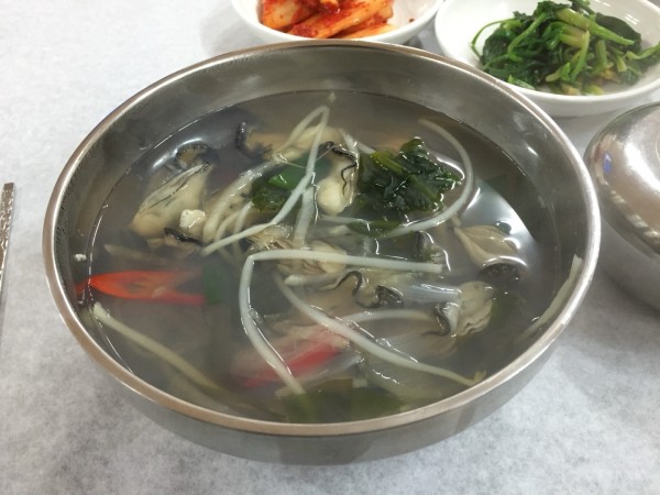 굴국밥은 삶은 밥 위에 굴과 국물을 함께 부어 먹는 음식으로,