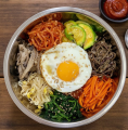 양푼비빔밥 (Yanggpun Bibimbap)**은 커다란 양푼(쇠그릇)에 여러 가지 나물, 고기, 고추장, 계란 등을 넣고 비벼 먹는 한국의 대표적인 전통 음식입니다. 🥢 특징 양푼: 보통 일반 밥그릇보다 훨씬 큰 스테인리스 그릇을 사용해 비빌 때 재료가 흘러내리지 않고 고루 섞입니다. 재료 다양성: 콩나물, 시금치, 고사리, 도라지, 애호박, 당근, 소고기볶음, 달걀프라이 등이 기본적으로 들어가며, 지역이나 계절에 따라 재료가 달라집니다. 고추장 양념: 매콤달콤한 고추장이 밥과 재료를 조화롭게 묶어주는 핵심 양념입니다. 비빔의 미학: 먹기 전에 재료와 밥, 고추장을 잘 섞는 ‘비비는 행위’ 자체가 양푼비빔밥의 매력 중 하나입니다. 🍽️ 맛과 식감 한입에 고소함, 매콤함, 짭짤함, 새콤함이 조화를 이루며, 나물의 아삭함과 고기의 풍미, 고추장의 깊은 맛이 어우러집니다. 🌾 유래 전통적으로는 농번기 때 여러 나물을 한데 모아 간편하게 식사할 수 있도록 만든 것이 시초로, ‘함께 비벼 먹는 공동 식사 문화’를 상징하기도 합니다. 💡 팁 고추장 대신 간장 양념장을 사용하면 덜 자극적이고 담백한 맛을 즐길 수 있습니다. 돌솥에 하면 ‘돌솥비빔밥’, 양푼에 하면 ‘양푼비빔밥’이라 부릅니다.