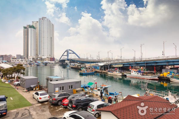 Gaetbae (boat without engine) is an exotic means of transportation to cross the Abai Village at the mouth of Cheongchoho Lake. It is a rapid means of traveling between downtown Sokcho and Abai Village along the 50 m-long waterway. This small barge-style boat without an engine can be run by pulling the wire manually. When fixing the solid steel wire on both sides of the waterway and pulling it hard with a hook, a boat moves forward slowly. As there is no boatman, passengers need to work together to move the boat. It takes about 5 min to cross the water by boat. This unique experience still attracts many tourists to Sokcho. Furthermore, it is known as the filming location for the Korean TV drama Autumn in My Heart, so many tourists from Japan and China visit the place.