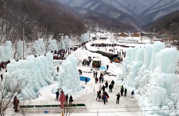 Chilgapsan Mountain, often referred to as the Alps of Chungcheongnam-do, rises majestically above Alps Village. Located in Cheonjang-ri, a name that evokes the imagery of reaching as high as the ceiling, this village is a getaway to the serene Cheonjangho Lake, together forming the picturesque Cheonjang-ri Alps Village. The area is well-equipped for visitors, boasting the Chilgapsan Mountain hiking trail, Korea's longest suspension bridge that crosses Cheonjangho Lake, a center for urban-rural community exchange, and a farm offering well-being experience. Alps Village is renowned for its annual Ice Fountain Festival, a winter highlight that draws visitors eager to behold the snow and ice sculptures and participate in a variety of sledding and ice bobsled activities. Beyond these chilly thrills, visitors can also engage in experiences like zip trekking and crafting traditional bottle gourd art.