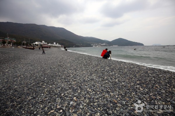 Hakdong Mongdol Beach, filled with small black pebbles, spans a distance of 1.2 kilometers and a x_width of 50 meters, covering a 30,000 ㎡ area. Walking on the pebbles stimulates acupressure points on the soles of feet, providing health benefits for visitors. Unlike other beaches on the southern part of the country, the water of Hakdong Mongdol Beach is deep with rough waves, but various water activities are available. There are accommodations and restaurants nearby and dock at the beach offers a boat excursion around popular attractions.
