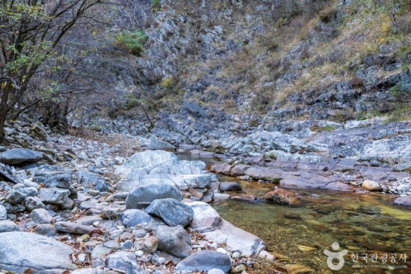 Namcheongyegok Valley is located on the northern side of Sobaeksan National Park. The forest is preserved quite well because the valley is located deep within the mountain. Freshwater fishes can be found within the clear water of the valley. The lush plants and clear water in summer and the fall foliage in autumn present a beautiful view. Follow the small trails to find the Namcheon Campground, where one can enjoy camping deep in the forest.