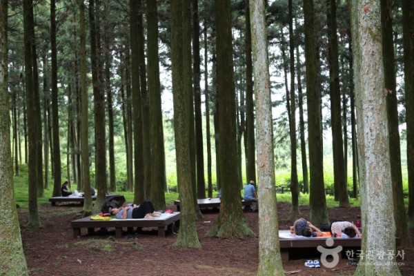 Jeju Jeolmul Recreational Forest opened on July 23, 1997. The forest is comprised of both a natural Japanese cedar forest and a man-made forest. The combination of the sea breeze and the shade of the forest canopy over the walking paths make it a cool attraction all year round.