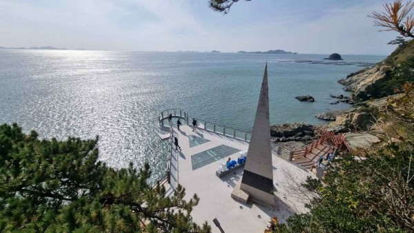Ttangkkeut Tower is a triangle monument commemorating the southernmost tip of the Korean peninsula. The Skywalk was remodeled using glass material with the theme of “taking one step beyond the end of the land,” symbolizing the end the beginning of the Korean peninsula. The skywalk made with transparent glass panels, offers visitors the thrill of walking above the sea. The installed photo booth provides visitors a chance to click great pictures with the vast blue sea in the background on one side and the Ttangkkeut Tower on another. It is also renowned for stunning sunset views.