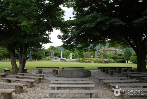 After the nationwide repression of Catholicism in 1791, a group of Catholics came to what is today known as Yeonpung Sanctuary to practice their religion in secret before they were discovered and executed in 1801. Today, Yeonpung Sanctuary is a Catholic sanctuary dedicated to the martyrs. Yeonpung Sanctuary has a Catholic church, a crucifix, and a sculpture and tomb of Hwang Seokdu (Luke; 1813-1866), a saint born in Yeonpung and martyred as a Catholic.