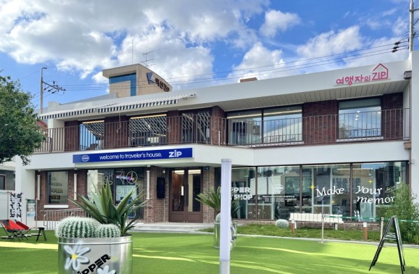 Zipper House is a multi-purpose cultural space that provides tourists with tourism information and convenient facilities, hosting various events and programs. The two-story building, adorned by a large red ribbon, features a gift shop selling souvenirs of Gwangju and Dong-gu, a campsite-like lounge and terrace, and a snack bar offering refreshments such as toast and coffee.
