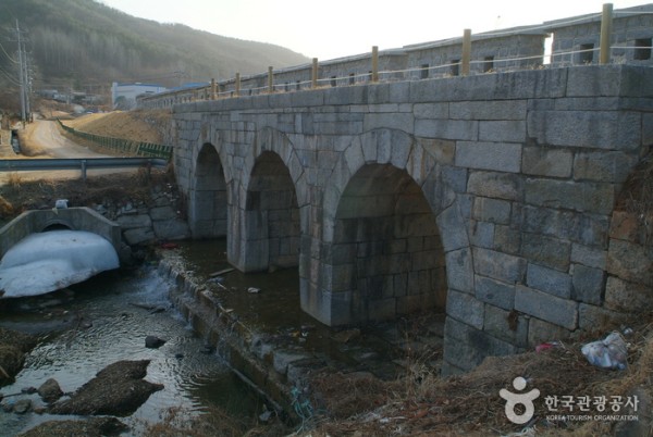 Seoksumun is a floodgate on the Dongnakcheon Stream, which flows through the town of Ganghwa-eup. The floodgate was built in 1711 (37th year of King Sukjong’s reign during the Joseon Period) and it is connected to the inner walls of the Ganghwasanseong Fortress. It is an arched structure with a design of three rainbows coming together. Made of granite, the floodgate measures 18.2 meters in length and 2.7 meters in x_height, while the arches are 1.7 meters tall, and 3 meters wide.