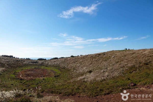 Geum Parasitic Cone is one of the most famous parasitic cones in the western mountainous region of Jeju. It is a satellite volcanic edifice that has a large circular crater (52 meters deep) and a crater at the summit, and the two peaks in the south and the north are connected by a low slope from east to west. The crater at the summit once held an abundant volume of water but it is now empty. The name Geum Parasitic Cone is speculated to have derived from an archaic word "Gom," which means "god." Therefore, it can be interpreted that this parasitic cone has been deified since the ancient times. Pines, cedars, briers, bo trees and Oriental photinia can be found near the circular crater and the lake area.