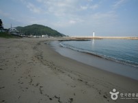 Gyeongsangbukdo 1726, Yeongdeokdaege-ro, Yeongdeok-gun, Gyeongsangbuk-do Gyeongjeong Beach is famous for its serene and clean water with gentle waves. The southern part of the beach is made of rocks. Visitors should avoid swimming in the waters since they are used as an aqua farm for growing marine products such as sea cucumbers, abalone and sea squirts. The beachside road is a perfect driving course with the view of the horizon.