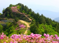 Jeollabukdo 196, Baraebong-gil, Namwon-si, Jeonbuk-do Baraebong Peak gets its name from its resemblance to an upside down barittae (a wooden rice bowl used by temple priests). The mountain is characterized by round slopes and fields of royal azalea flowers in spring. Trekking starts at Yongsan Village, 1.5 kilometers away from Unbong-eup. The trail follows a gentle path through a forest reserve behind a ranch and up to the peak. The last section of the trail before reaching the summit is covered in royal azaleas in full bloom from late April until May. The view from the peak includes the whole vista of Jirisan Mountain.