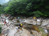 Gyeongsangnamdo 334-1, Eoreumgol-ro, Miryang-si, Gyeongsangnam-do Hobaksogyegok Valley is located within Gajisan Mountain approximately 3 kilometers away from Eoreumgol Valley in Jaeyaksan Mountain, where the water originates. The valley offers beautiful surroundings and clear water developed over the years. Hobakso Pond, shape like a grain-grinding tool, is located at the base of a 10-meter-high waterfall. With a circumference of 30 meters, the pond is also called Sirye Hobakso Pond, Guyeongpokpo Falls, and Baengnyeonpokpo Falls. In the past, the pond was a spiritual place where people would pray for rain. Surrounded by white granite rocks, the area is a scenic place of natural beauty, free from pollution. Visitors can also look around nearby Baengnyeonsa Temple, Hyeongjeso Pond and Ocheonpyeong Rock.