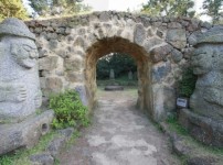 Jejudo San 6, Sehwa-ri, Jeju-si, Jeju-do Located the Northeastern part of Jeju Island, Darangswi Oreum is a parasitic volcano that stands about 380 meters above sea level. From Darangswi Oreum, visitors can overlook tourist attractions such as Seongsan Ilchulbong (Sunrise Peak), Udo Island, Hallasan Mountain, coastlines, and various parasitic cones. The mountain has an oval shape from south to north with a steep incline. The top has a large, deep funnel-shaped crater that still preserves its original shape unlike craters in cones. The name Darangswi is derived from the fact that the mountain looks like a moon ('Da' meaning 'Moon' and 'Swi' meaning 'Mountain' in the Jeju dialect). Trees are scattered here and there at the top, and the outskirts of the mountain are decorated with cedar trees. Meadow plants such as Aster yomena populate most of the mountain. A gentle hill to the right of Darangswi Oreum is called Akkeun Darangswi Oreum (also called Sowol Nangak). Meaning 'small,' 'Akkeun' is both old Korean and Jeju dialect. Darangswi Oreum hosts Wollang Peak Sunrise Festival every year allowing visitors to see the spectacular full moon from the crater. There are wooden stairs in place for easy ascent, and the mountain is also a popular site for paragliders.